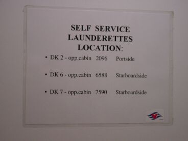 We have received many requests for more information on the self-service laundry rooms located on the ships. Below are photos to give you an idea of where they are located and what the facilities look like. Keep in mind that you can also have your laundry done for you for a reasonable charge.