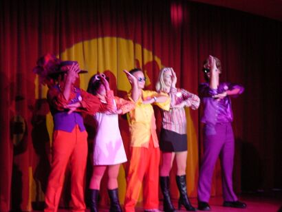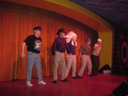 | The VIllage People made a special appearance on our cruise. Hmmm, doesn't the guy on the end in the blue jeans look a lot like my hubby?!?!?! |