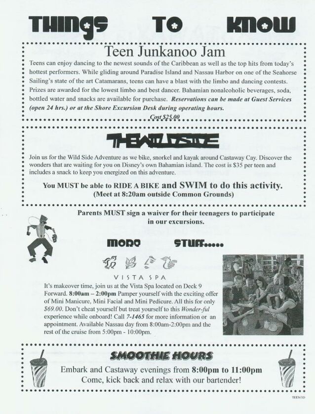 times and activities frequently, so it is likely that your cruise will be somewhat